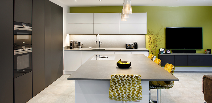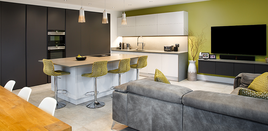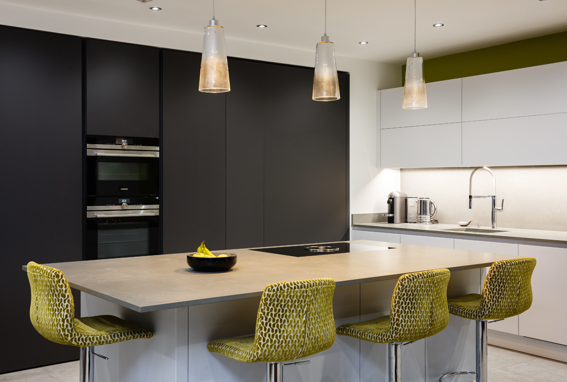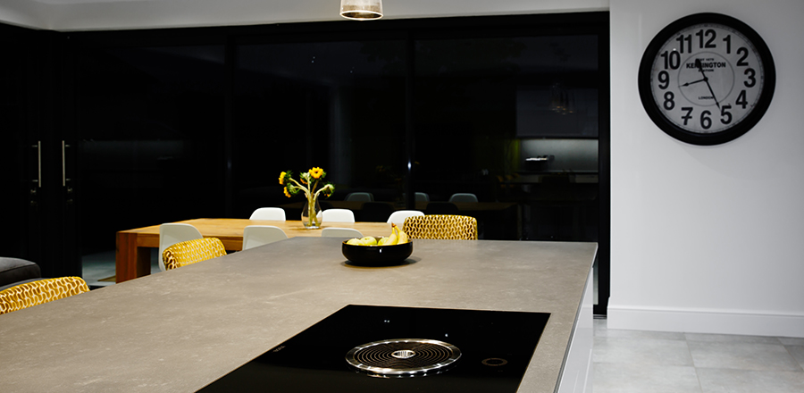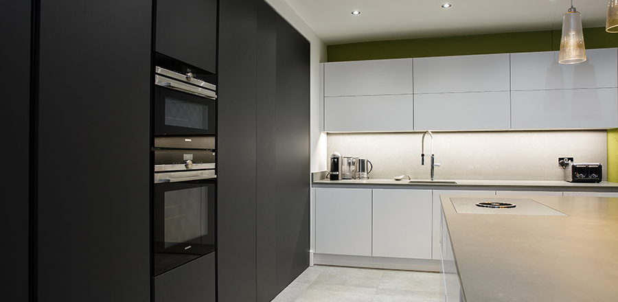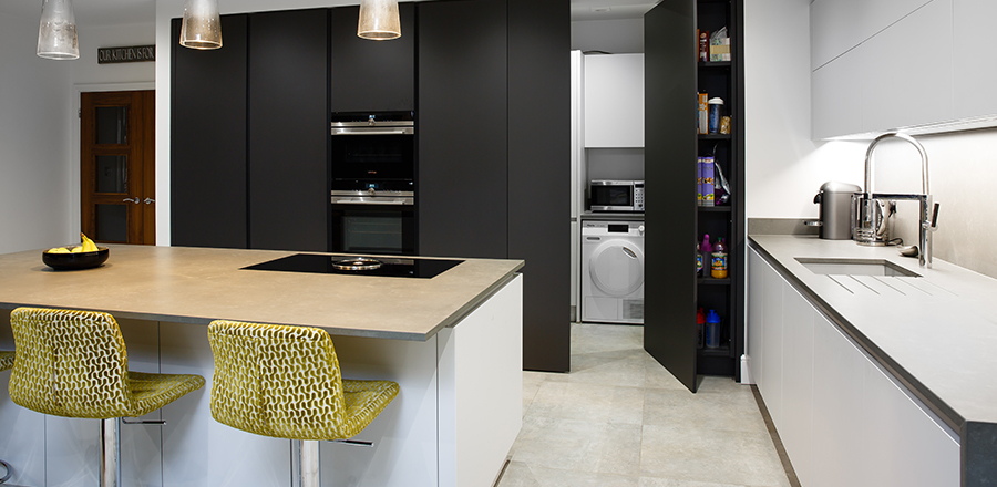 The use of strong colour brings out your personality in the kitchen. Along with style, the design must also address functionality. The Kube Bondi-c kitchen excels in both. The Downdraft extraction hob keeps a line of sight to the open plan living and dining areas, at the same time keeping the room free from steam, odours, and grease. The utility area is accessed through a door in the tall presses.