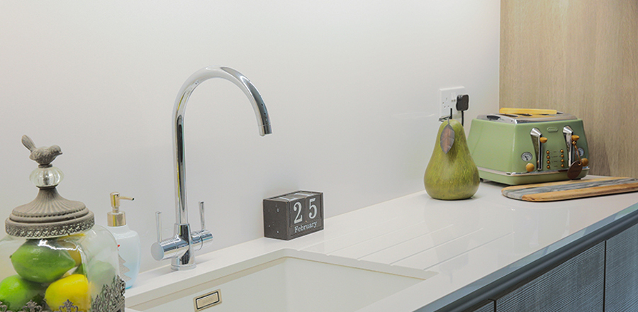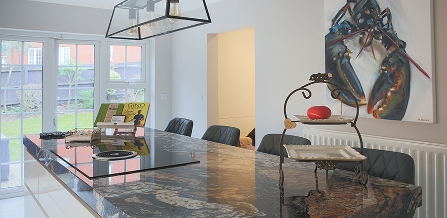 Kimberley worked with Shane in our Leigh-on-Sea store to create this beautiful kitchen design for her home in Brentwood. This design from Leicht uses two contrasting colours, namely Stone Oak on the wall and Frosty White on the large island unit. The cooking appliances are from Siemens, along with a downdraft hob from Bora.