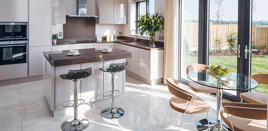 Castleway is an exceptional development of family homes on Kinsealy Lane, Malahide. Making the most of this superb location, Carroll Estates’ stylish new scheme comprises of four bedroom detached homes designed with grace and elegance. The Kube kitchen featured has a handle-less ivory gloss finish with an island unit and breakfast bar seating for two. The showhouse in Kinsealy is furnished with Italian furniture from Calligaris at Kube.