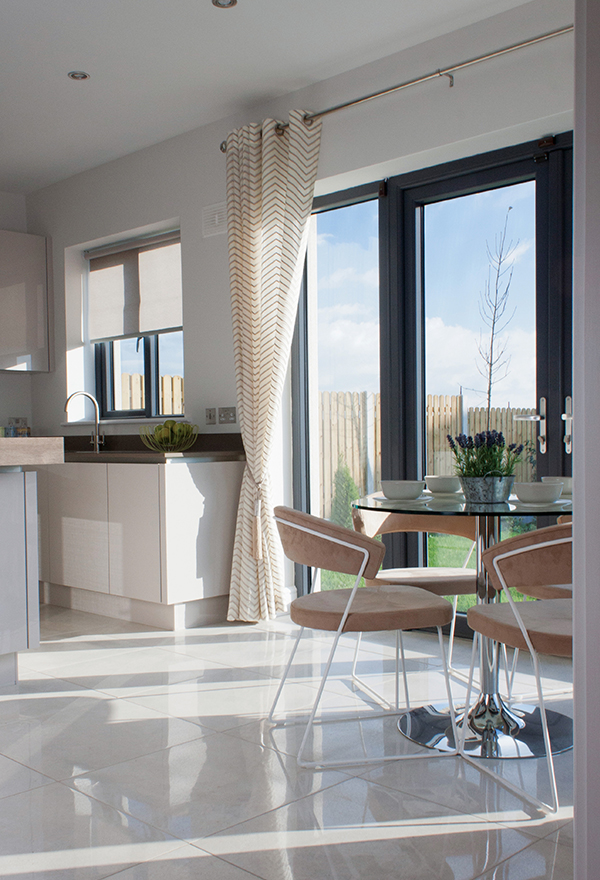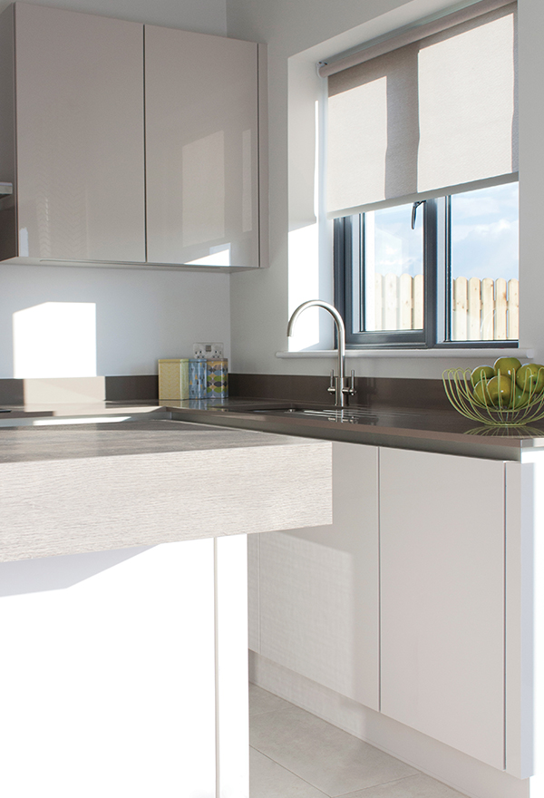 Castleway is an exceptional development of family homes on Kinsealy Lane, Malahide. Making the most of this superb location, Carroll Estates’ stylish new scheme comprises of four bedroom detached homes designed with grace and elegance. The Kube kitchen featured has a handle-less ivory gloss finish with an island unit and breakfast bar seating for two. The showhouse in Kinsealy is furnished with Italian furniture from Calligaris at Kube.
